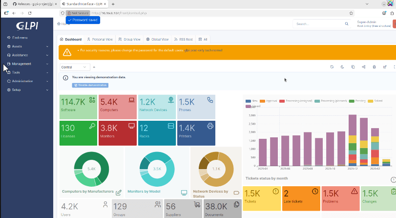 Once logged in, explore GLPI’s features and customize as needed.